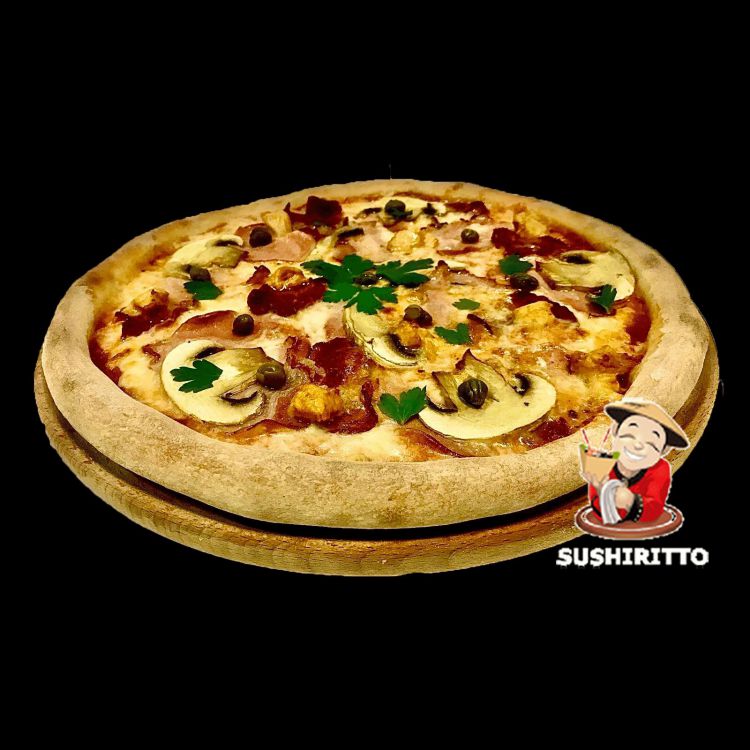 Соус червоний, моцарелла, буженина, салямі, шинка, свиняча вирізка, помідор, маслини.![Доставка Сільська из SushiRitto Сільська]()