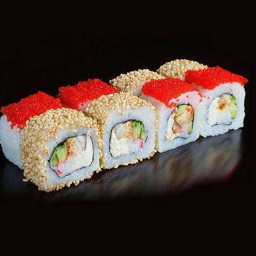 Роллы ДОН ЛИ «Tatami-sushi»Состав роллов: Рис, нори, снежный краб, сыр Филадельфия, огурец, угорь, икра тобико, кунжут (Вес — 215г)цена : 260 грн доставка по Измаилу: 120 грн