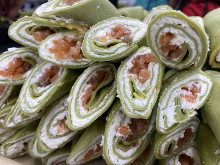 Блины шпинатные с форелью