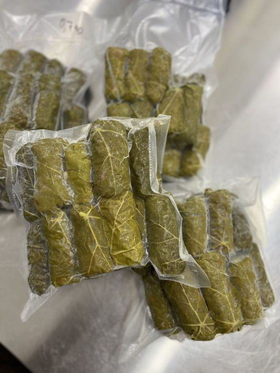 Состав: рис, говядина, куриное филе, лук, морковь, соль, томатная паста, виноградные листья.