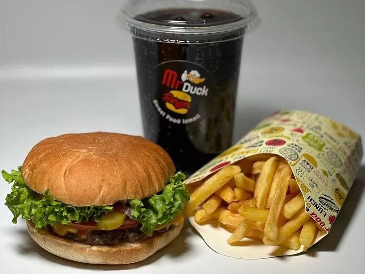 Комбо №1 «Mr Duck»Біф Бургер 1 штКартопля Фрі ЛНапій на вибірцена : 215 грн доставка по Измаилу: 120 грн