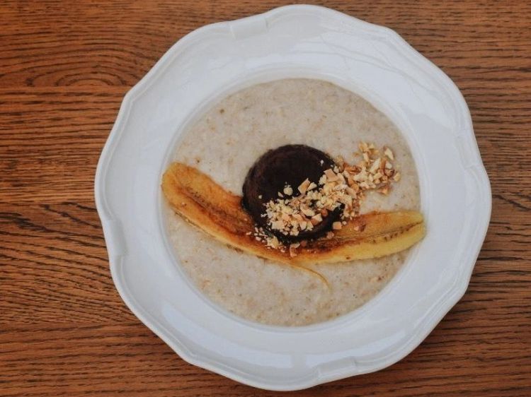Вівсянка на кокосовому молоці «Гурман»зі смаженим бананом та горіховим ганашем , та горіховою, пряною крихтоюцена : 180 грн доставка по Измаилу: 120 грн
