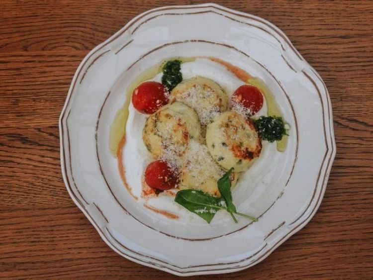 Пармезанові сирники «Гурман»з томатами кімчі, часниковим соусом та шпинатомцена : 249 грн доставка по Измаилу: 120 грн