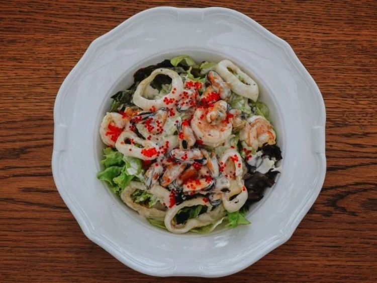Теплий коктейль із морепродуктів «Гурман»На подушці з мікс - салату з соусом блю - чиз300гцена : 455 грн доставка по Измаилу: 120 грн