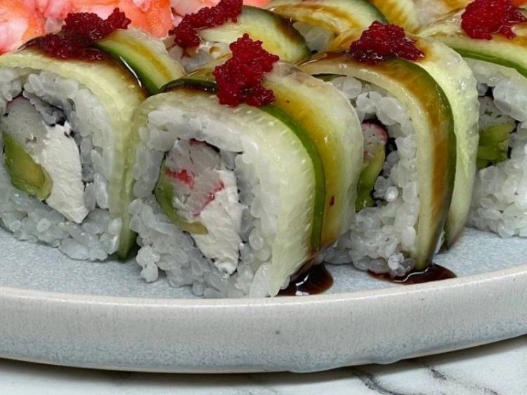 Філадельфія з огірком та сніжним крабом «Гурман»Рис, норі, огірок, авокадо, сніжний краб, сир філадельфія, унагі, тобікоцена : 255 грн доставка по Измаилу: 120 грн
