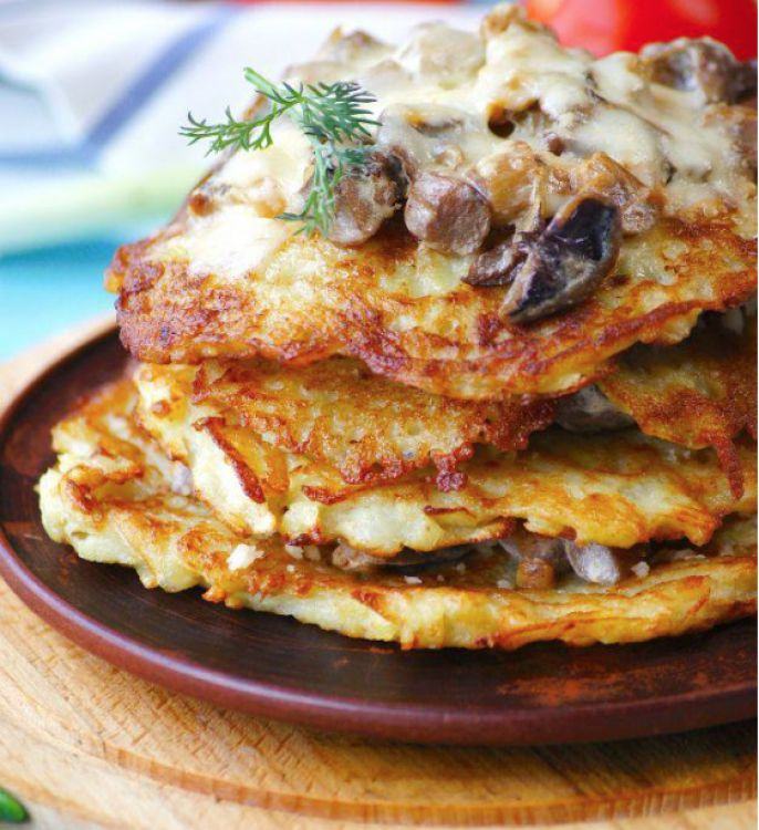 Деруни з грибним соусом «Хуторок»Картопля,мка, яйце,вершки, гриби, цибуляцена : 230 грн доставка по Измаилу: 120 грн