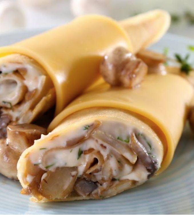 Млинці з куркою та грибами «Хуторок»Молоко, мука, яйце, гриби, цибуля, вершки, масло вершковецена : 270 грн доставка по Измаилу: 120 грн