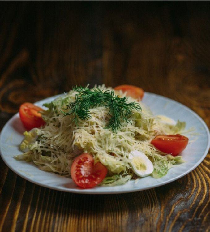 Цезар з курячим філе «Хуторок»салат айсберг, пекінська кап., куряче філе, помідор чері, яйце, сир пармезанцена : 300 грн доставка по Измаилу: 120 грн