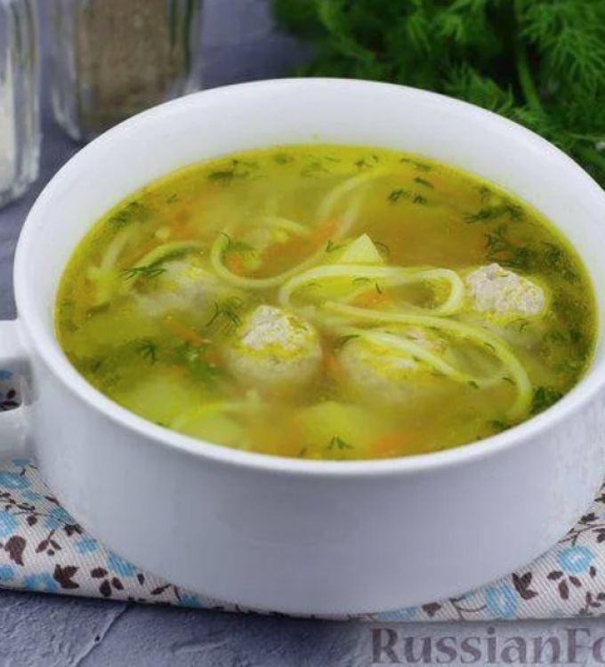 Суп з фрикадельками «Хуторок»Картопля, цибуля, морква,рис,фарш, зелень, локшина.цена : 110 грн доставка по Измаилу: 120 грн