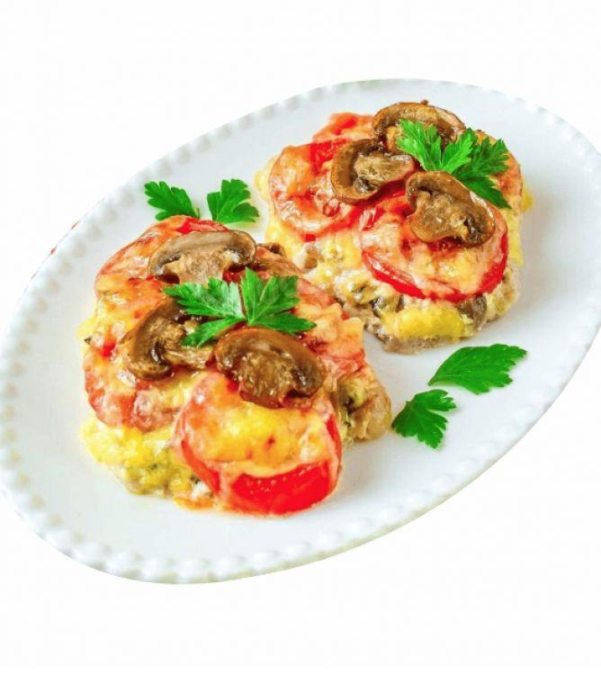 Свинина Хуторська «Хуторок»М ясо св,сир,гриби, мука, яйце,помідор св., зелень.цена : 250 грн доставка по Измаилу: 120 грн