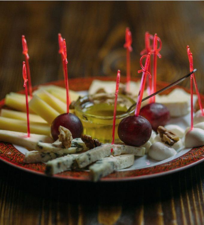 Асорті з вишуканих сортів сиру «Хуторок»подається з медом та горіхамицена : 450 грн доставка по Измаилу: 120 грн