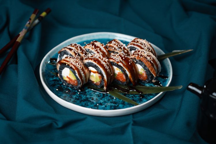 Чорний Дракон «Premium Sushi»чорний рис, сир філадельфія, лосось, авокадо, вугор, соус унагі, кунжут400g (8шт.)цена : 440 грн доставка по Измаилу: 120 грн