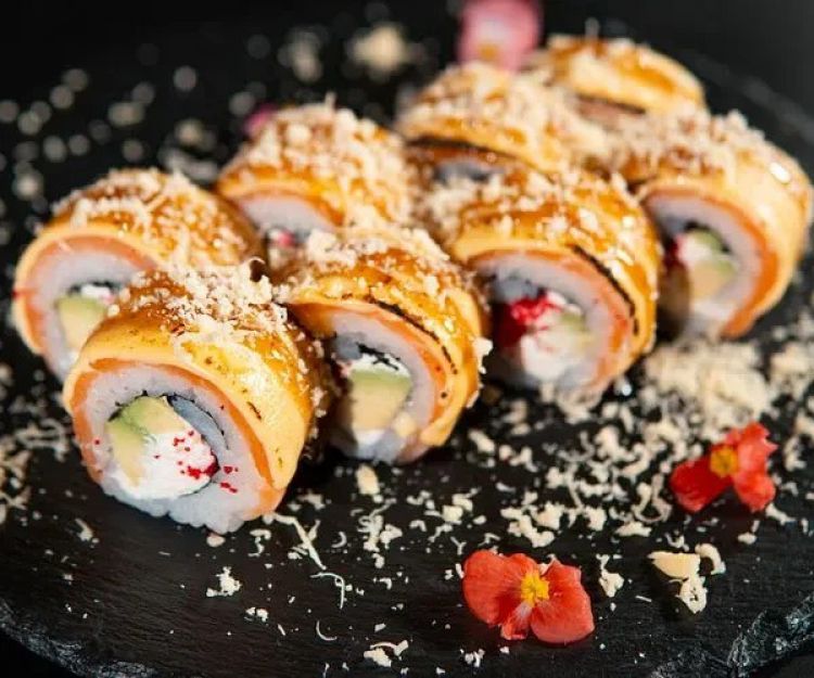 Сирний Рол з лососем «Premium Sushi»рис, сир філадельфія, авокадо, ікра масаго, лосось, сир тост, соус унагі, сир пармезан370g (8шт.)цена : 340 грн доставка по Измаилу: 120 грн