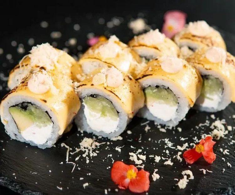Рол без риби «Premium Sushi»рис, сир філадельфія, огірок, ікра масаго, авокадо, сир тост, соус спайс, сир пармезан350g (8шт.)цена : 220 грн доставка по Измаилу: 120 грн