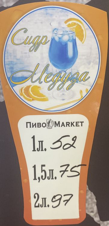 Сидр "Медуза" 1л «ПивоMarket»Сидр (объем 1л) доставка из магазина «ПивоMarket»цена : 52 грн доставка по Измаилу: 150 грн