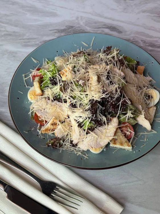 Цезар з запеченою куркою «КАФЕ BEREG»З запеченою куркою, помідори черрі, перепилине яйце, сир пармезан, мікс салату, грінки та соус цезар300гцена : 295 грн доставка по Измаилу: 120 грн