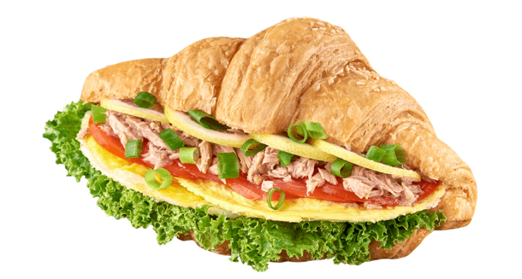 Круасан з тунцем «Львівьські круасани»круасан, зелена цибуля, тунець, яєчня, лимон, помідор, салат, соус класичнийцена : 119 грн доставка по Измаилу: 120 грн