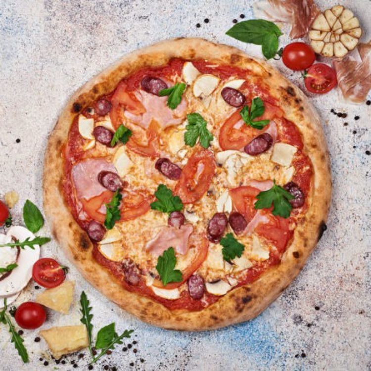 Піца Баварська 40см «Celentano»Соус з італійських томатів “Mutti”, мисливські ковбаски, шинка, печериці, помідори та моцарела 870г ±3-5%цена : 395 грн доставка по Измаилу: 120 грн