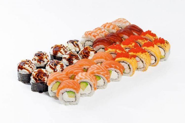 Сет «Хокі» «Osama Sushi»Філадельфія з авокадо Філадельфія з тунцем 0,5 Філадельфія з тигровою 0,5 Чіз делайт Хікомак манго тунець Вага:1125 г.цена : 648 грн доставка по Измаилу: 120 грн