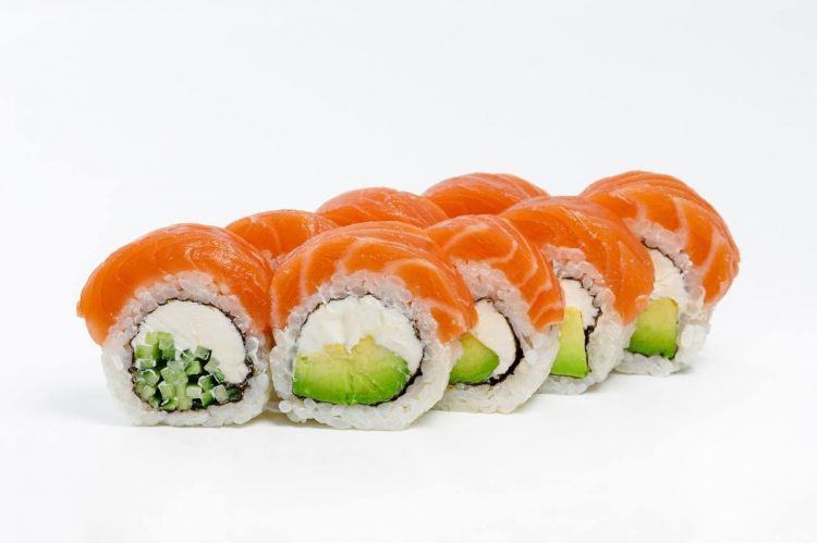 Філадельфія з лососем MAXi(вдвічі більше риби) «Osama Sushi»Вага: 335 г Склад: рис, норі, сир, огірок, авокадо, лосось.цена : 319 грн доставка по Измаилу: 120 грн