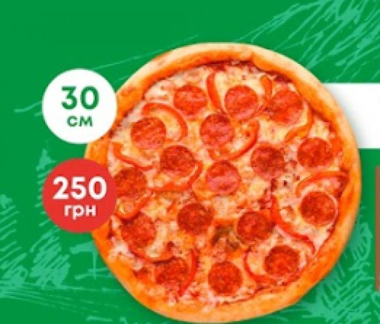 Пицца Пеперони 30см «Суши-Таун»Состав: Соус красныйСалямиМоцареллаПерец сладкийБазиликцена : 250 грн доставка по Измаилу: 120 грн