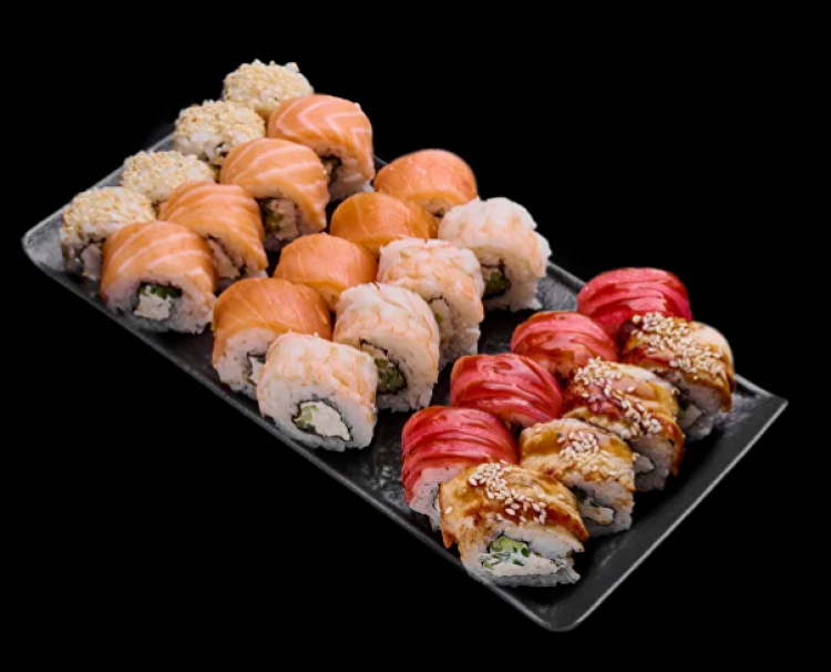 «Sushi Zoom»(філадельфія з лососем ½ , філадельфія з вугрем½ , філадельфія з тунцем½ , філадельфія з тигровою креветкою½, філадельфія з копченим лососем ½ , філадельфія сезам½ )
