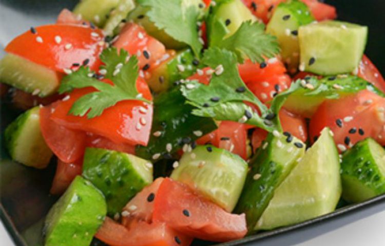 Салат зі свіжих овочів «Chin-Chin»Огірок, томати, прикрашається обсмаженим кунжутом і кінзою240 гцена : 139 грн доставка по Измаилу: 120 грн