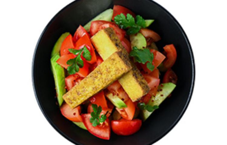 Салат зі свіжих овочів і тофу «Chin-Chin»Огірок, томати, обсмажене тофу, прикрашається обсмаженим кунжутом і кінзою320 гцена : 159 грн доставка по Измаилу: 120 грн