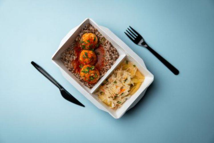 Бізнес Ланч №9 «NaDivane»Вага: 450грКурячі тефтеліСоус томатнийГречкаКвашена капустаКвашений помідорЗелена цибуляцена : 190 грн доставка по Измаилу: 120 грн