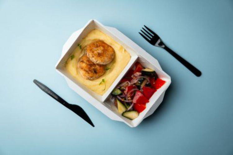Бізнес ланч №1 «NaDivane»Вага: 470грКурячі котлетиПюре картоплянеПомідорОгірокКримська цибуляПетрушкаЧерріцена : 195 грн доставка по Измаилу: 120 грн