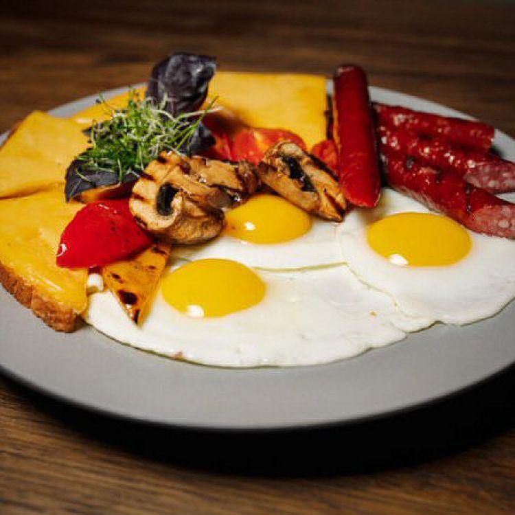 Немецкий завтрак «Avenue 25»Яичница глазунья из трёх яиц, овощи гриль, охотничьи колбаски, тосты с сыром. Вес 320г.цена : 270 грн доставка по Измаилу: 120 грн