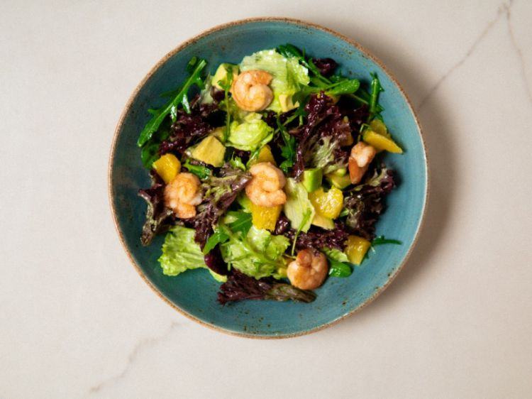 САЛАТ З КРЕВЕТКАМИ ТА АВОКАДО «Пармезан»листя салату з обсмаженими хвостами креветок, авокадо та апельсином250 гцена : 408 грн доставка по Измаилу: 120 грн