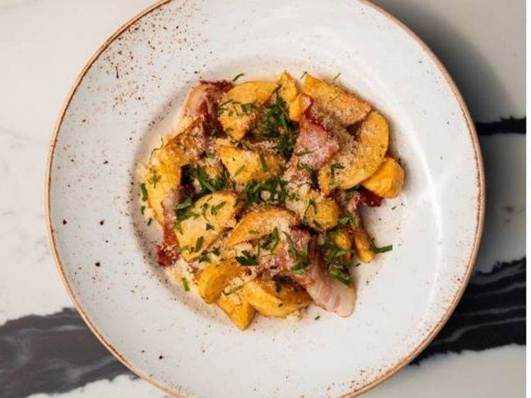 КАРТОПЛЯ PARMEZAN «Пармезан»картопляні дольки з беконом, часником та пармезаном300 гцена : 168 грн доставка по Измаилу: 120 грн