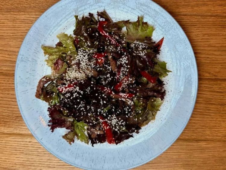 Салат Хорціс «Хінкальня»Соковита яловичина, тонкі обсмажені смужки перцю та цибулі, листя салату — зі спеціями для насиченого смаку. 250гцена : 273 грн доставка по Измаилу: 120 грн
