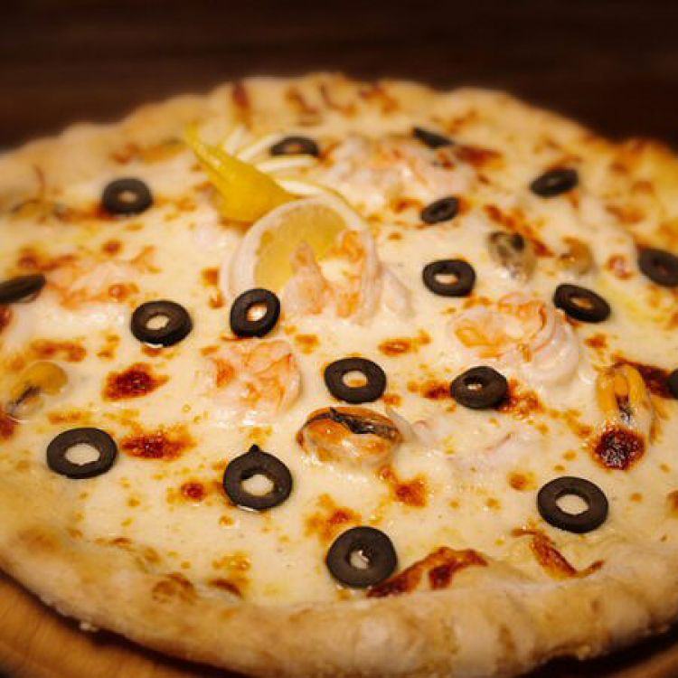 Пицца Маринара «Avenue 25»Мидии, креветки тигровые, кальмары, маринованный лук, сливочный соус, «Моцарелла», маслины, лимон, пармезан. Вес 500г.цена : 390 грн доставка по Измаилу: 120 грн