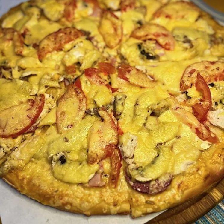 4 сезони 35 «Пані-Піца»Телятина, курка, салямі, балик, помідори, гриби та сирцена : 380 грн доставка по Измаилу: 120 грн