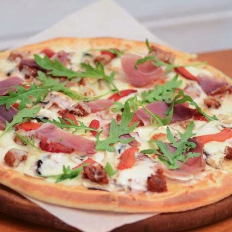 Кантрі 35 «Пані-Піца»Прошутто, балик, гриби, печений перець, в'ялені томати, мар.лук і руколацена : 370 грн доставка по Измаилу: 120 грн