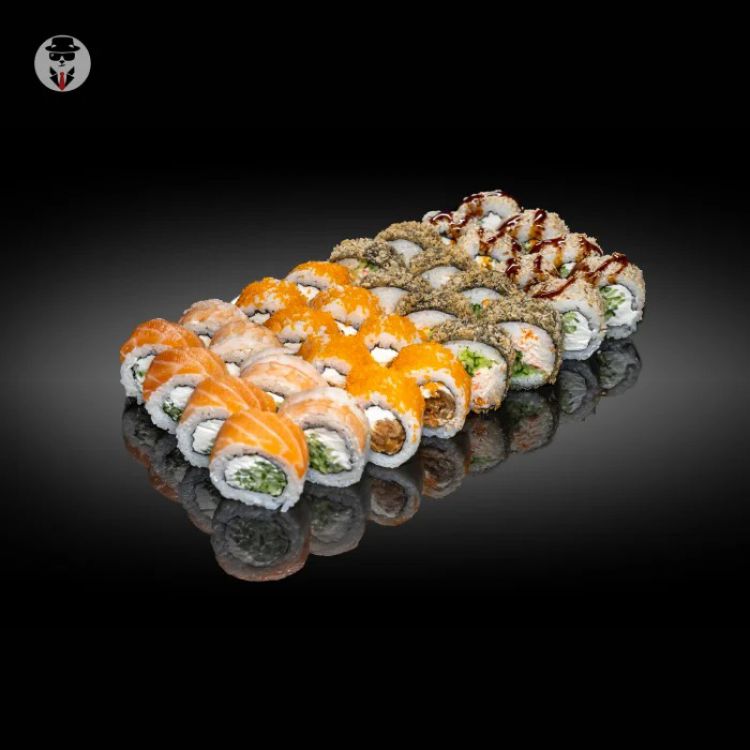 Сет Дабл Фіш «СушіБос»Вага: 966 g.рол філадельфія 4штрол філа масаго теріякірол аляска з креветкою 4штрол філадельфія в кунжутірол каліфорнія темпурацена : 539 грн доставка по Измаилу: 120 грн