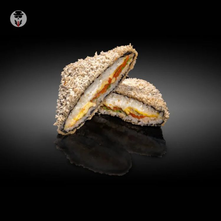 Сендвіч з лососем «СушіБос»Вага: 241 g.Рис, норі,лосось філе, соус спайс, чеддер,сухарі панко,салат латук, сир вершковийцена : 239 грн доставка по Измаилу: 120 грн