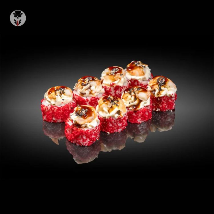Рол Королева «СушіБос»Вага: 346 g.рис, норі, вершковий сир, креветка, омлет тамаго, огірок, соус унагі, масаго Red, кунжут міксцена : 189 грн доставка по Измаилу: 120 грн