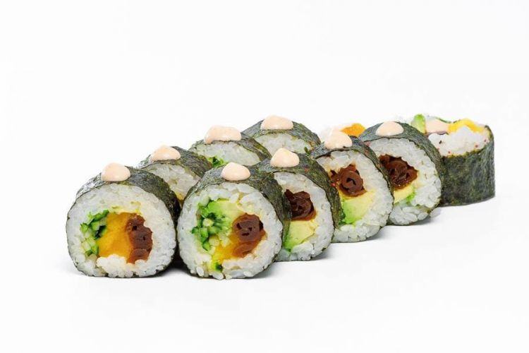 Футо Вега «Osama Sushi»- Норі - рис - манго - огірок -авокадо -маринований гарбуз Спайсі соус Вага: 265 грамцена : 134 грн доставка по Измаилу: 120 грн