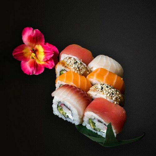 Ролл Радуга «Avenue 25»Сливочный сыр, свежие огурец и авокадо, «Снежный краб», свежий лосось, свежий тунец, копченый угорь, морской окунь, соус «Унаги», микс кунжута. Вес 220г.цена : 390 грн доставка по Измаилу: 120 грн