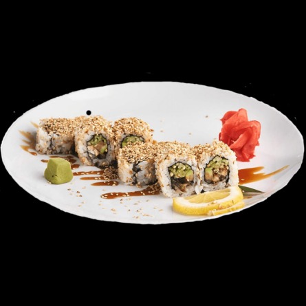 Каліфорнія з вугрем «Celentano»Вугор, огірок, авокадо, соус унагі, кунжут 210/35/45цена : 255 грн доставка по Измаилу: 120 грн