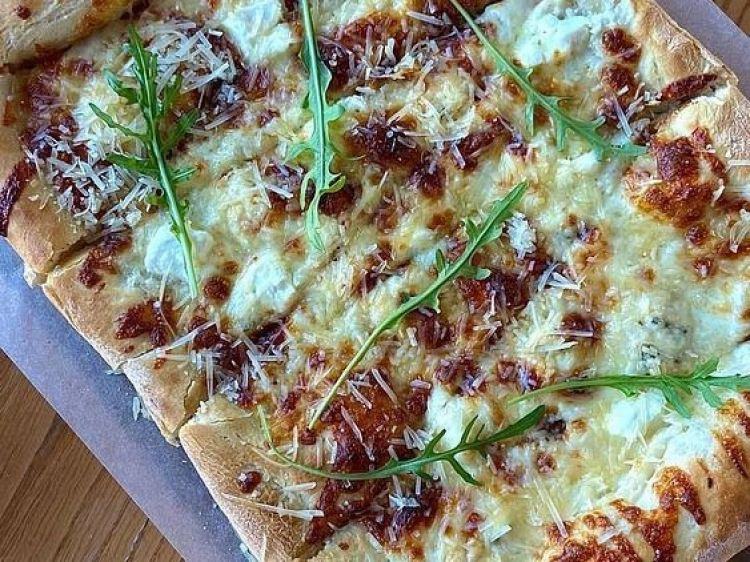 Піца 4 сири «КАФЕ BEREG»Сир моцарелла, дор-блю, фета, пармезан, соус вершковий600гцена : 310 грн доставка по Измаилу: 120 грн