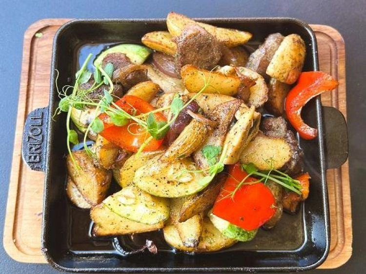 Гаряча сковорода з телятиною «Дитяче Королівство»Телятина, картопля, кабачки, цибуля, перець болгарський, печериці, соус "Світ чилі"цена : 355 грн доставка по Измаилу: 120 грн