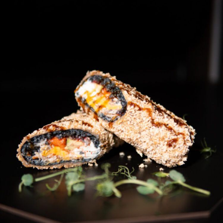 Шаурма-рол Black «Premium Sushi»Рис чорний, сир філадельфія, сир тост, авокадо, вугор, лосось, ікра масаго, соус унагі 1шт. | 420gцена : 395 грн доставка по Измаилу: 120 грн