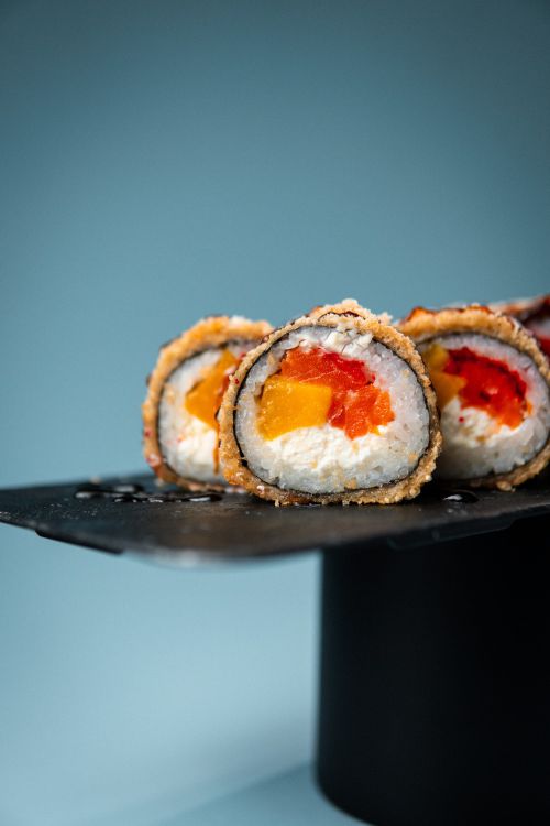 Гарячий лосось-манго «Premium Sushi»Рис, сир філадельфія, лосось, манго, ікра масаго, соус унагі420g (8шт.)цена : 380 грн доставка по Измаилу: 120 грн