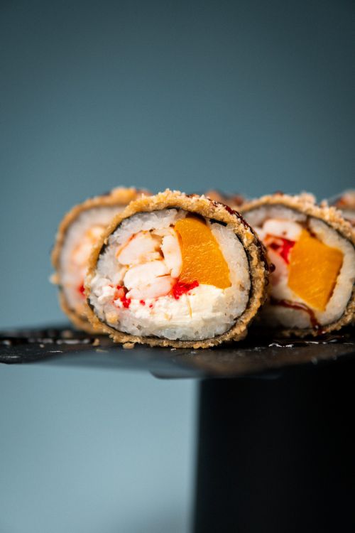 Гарячий креветка-манго «Premium Sushi»Рис, сир філадельфія, креветка, манго, ікра масаго, соус унагі420g (8шт.)цена : 390 грн доставка по Измаилу: 120 грн