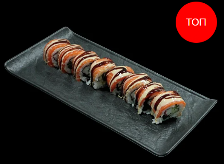 Пекельний Лосось «Sushi Zoom»(рис, норі, лосось, сурімі, огірок, перець, халапеньйо, соус унагі, соус шрірача)270гцена : 219 грн доставка по Измаилу: 120 грн