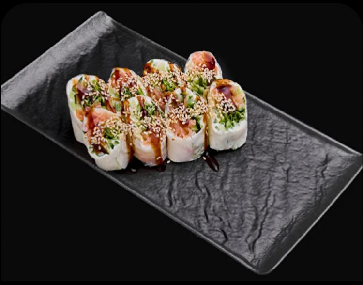 Спрінг Рол з Лососем та Крем Сиром «Sushi Zoom»(рисовий папір, лосось, авокадо, огірки, крем сир, соус понзу, кунжут)170 гцена : 219 грн доставка по Измаилу: 120 грн